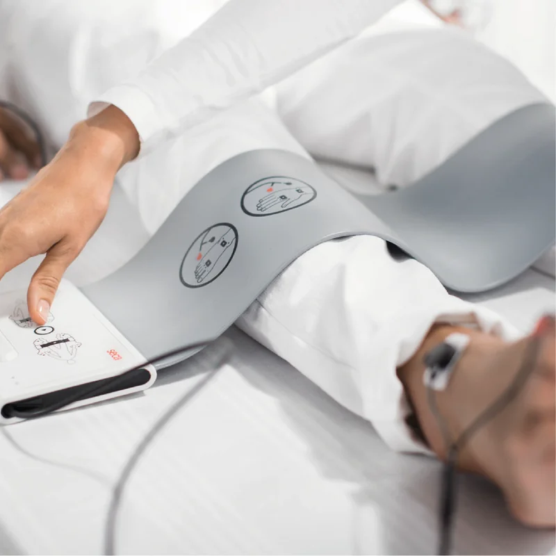 Con un peso de solo 3 kg, el Seca 525 está diseñado específicamente para uso móvil, permitiendo realizar evaluaciones de composición corporal donde sea necesario. Su tapete de medición patentado con batería recargable por inducción mide de forma independiente todos los parámetros importantes, incluyendo masa grasa, masa muscular y agua corporal. Los electrodos con mecanismo Easy Snap se fijan rápidamente a los ocho electrodos adhesivos, cuya colocación correcta viene indicada en el tapete.