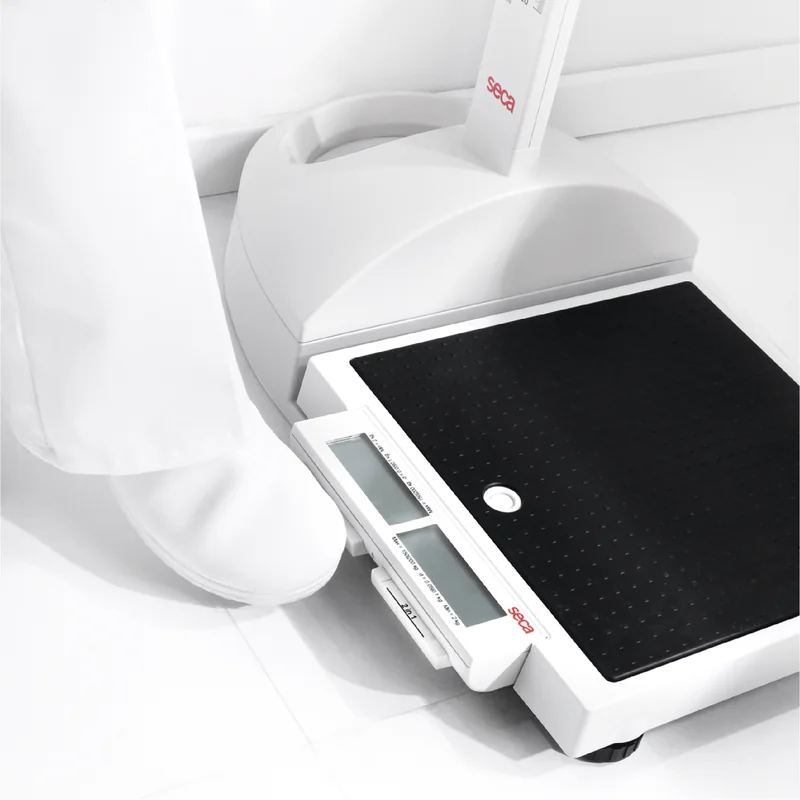 Seca 878 – Báscula digital médica Clase III con doble pantalla y función madre-bebé