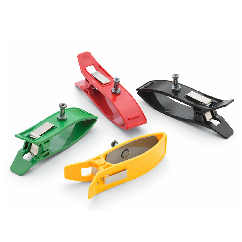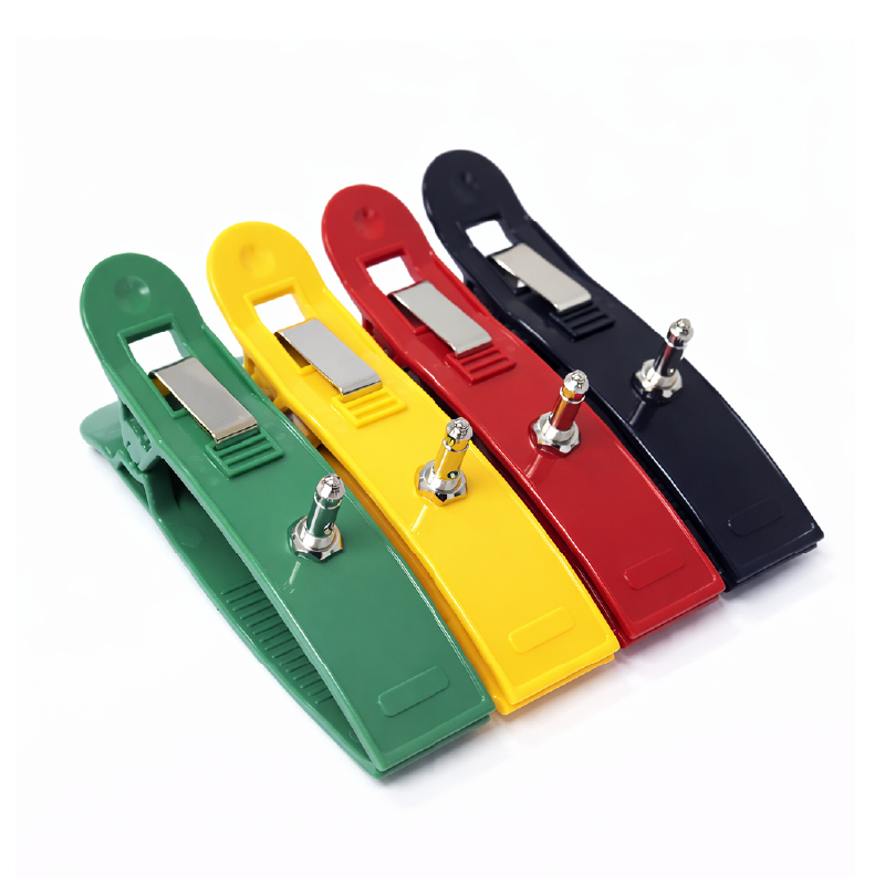 - Botón de ajuste en cada pinza que asegura una conexión segura y estable con el cable del electrocardiógrafo, garantizando una transmisión de señal fiable.