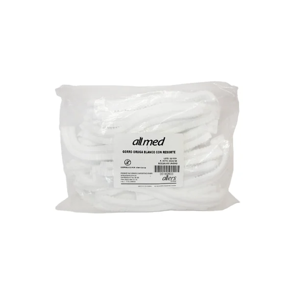 Gorro desechable oruga resortado blanco – Paq 50 – Allmed