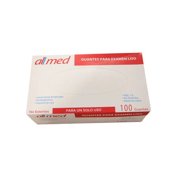 Guantes látex examen lisos – Talla L Caja 100 – Allmed